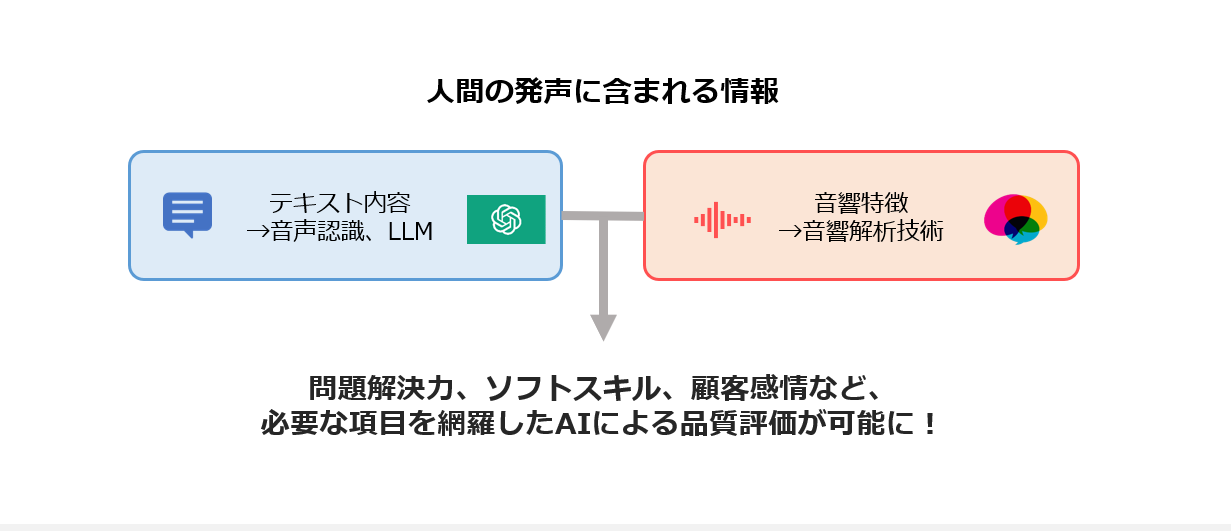 「何を言ったか(発話内容)」と「どう伝えたか(声の印象)」を同時に評価する機能です。