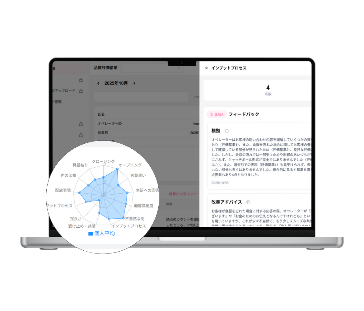 SVの評価負担を軽減し、応対品質の向上とオペレーターの成長を支援します。